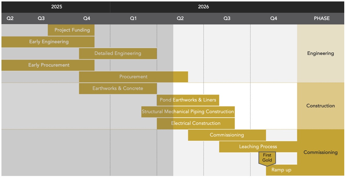 The first phase will focus on the dry circuit, ore leaching on the pads, and the build up of gold inventory (i.e. gold tenor in the pregnant solution) and is planned to commence in June, 2026. This is significantly earlier than previously expected, adopting the "as early as possible" approach, which provides extra time and flexibility to commission the plant in time for planned commercial production in early Q4, 2026.