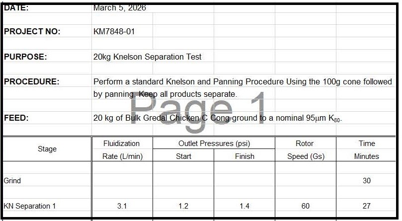 Knelson Separation Test Procedures and Results