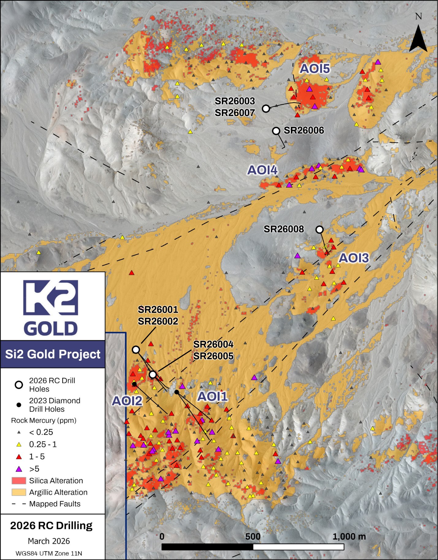 “The completion of our 2026 drill program marks an exciting advancement in the evolution of testing the Si2 epithermal system, which we have verified from previous drilling to be a gold bearing system,” stated Anthony Margarit, President and CEO of K2 Gold. “This phase of drilling tested a model inspired by a deep technical dive targeting the “boiling zone” of the system which could potentially host significant grades and volume of gold. The model held up extremely well in all holes drilled, the lithologies and textures intercepted are very encouraging, and we look forward to receiving the assay results!”