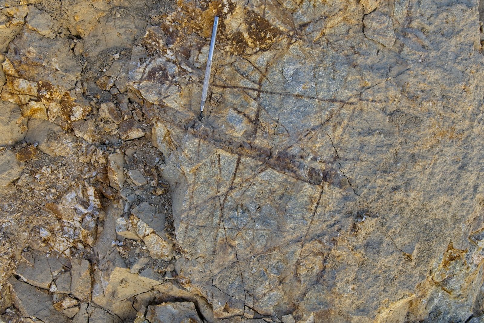 Figure 3 – Early quartz diorite porphyry with strong A veining exposed along road segment to drill pad #3.