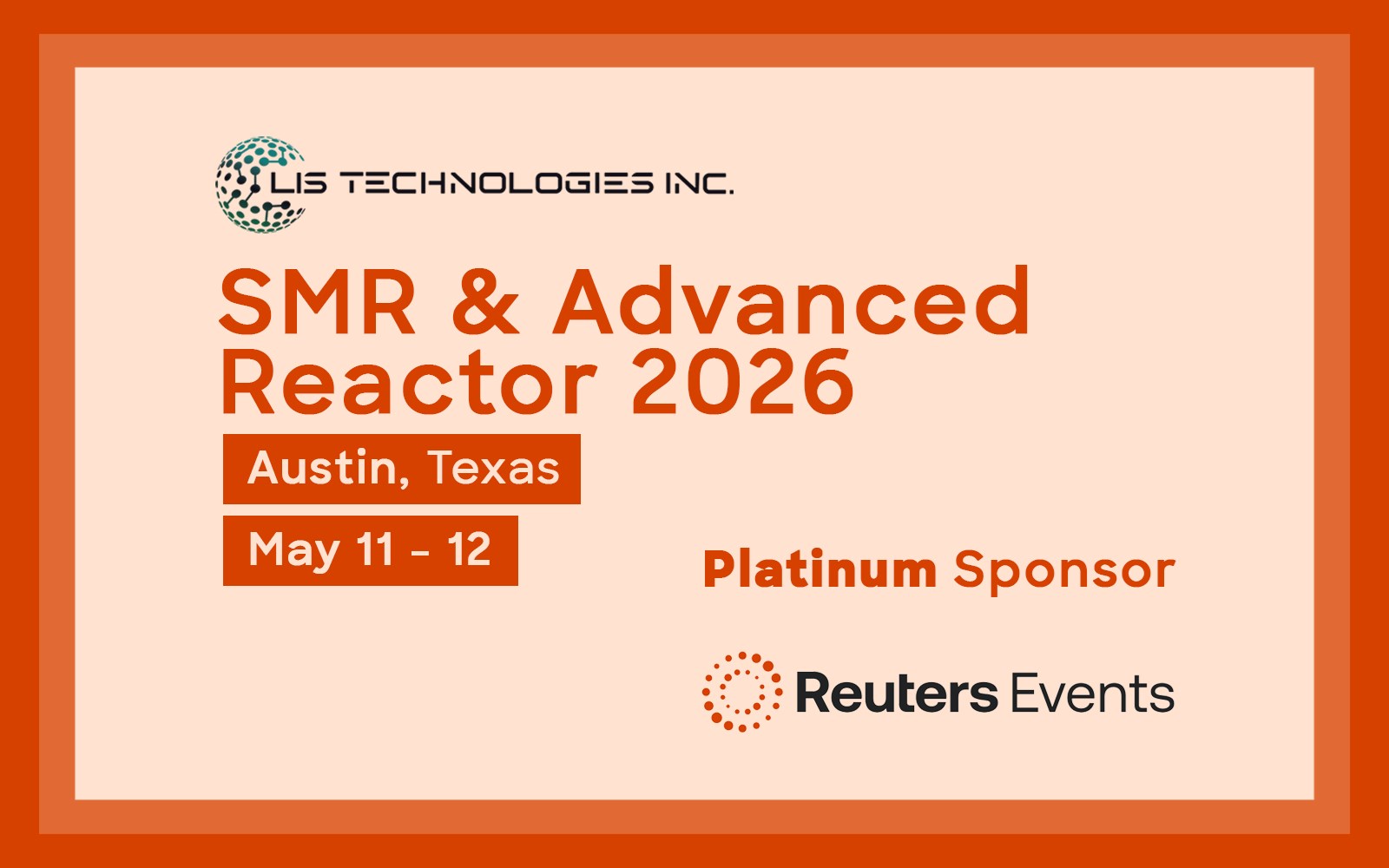 Figure 1 – LIS Technologies Inc. Announces Platinum Sponsorship of Reuters Events’ SMR and Advanced Reactor 2026, where Christo Liebenberg, President and Co-Founder of LIS Technologies, is scheduled to lead a Keynote Presentation.